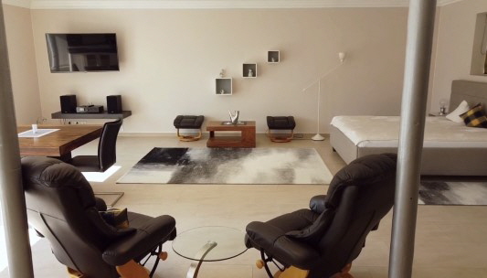 Entspannung pur nach einem ereignisreichen Urlaubstag finden Sie in unserer Multimediaecke. Zwei Relaxsessel mit Fußhocker stehen Ihnen zur Verfügung. Auf dem kleinen runden Glastisch stellen Sie Ihre Kleinigkeiten ab. Genießen Sie das Bild des 65 Zoll Fernseher oder den Klang der darunter befindlichen Internet Hifi Anlage. W-LAN ist selbstverständlich kostenlos.